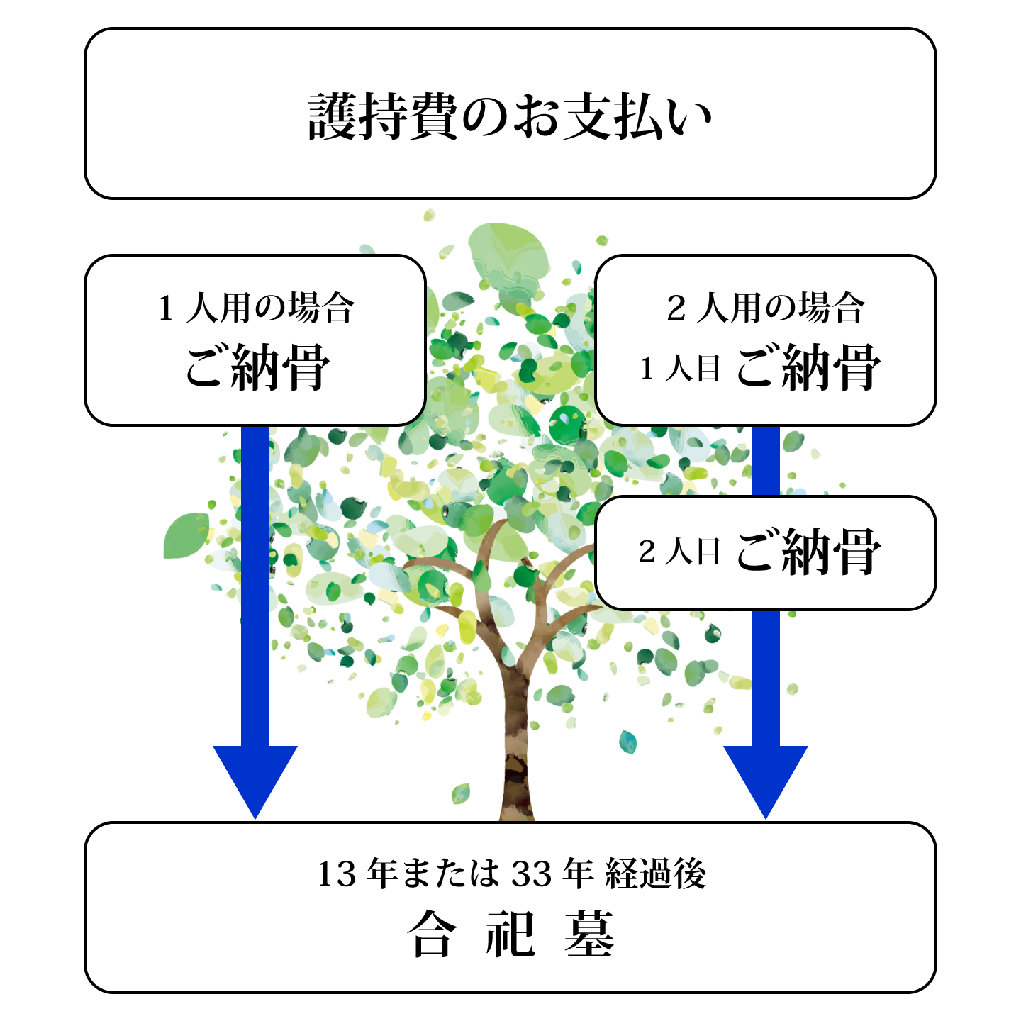 ご納骨時に納めて頂く費用の他に、年間護持費(生前中のみ)が必要となります。